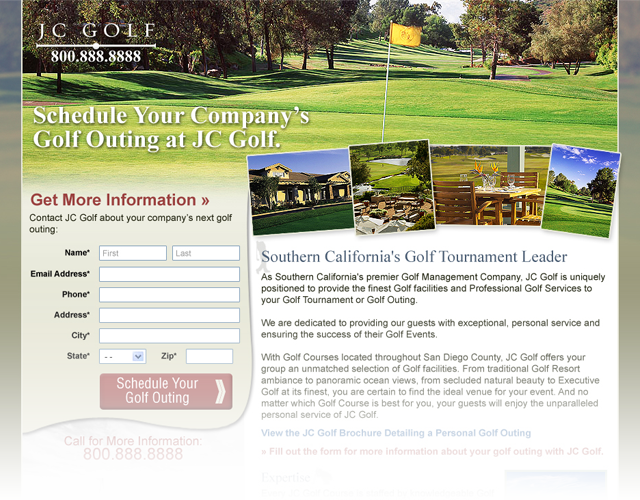 Conversion page for corporate golf outings for JC Golf.