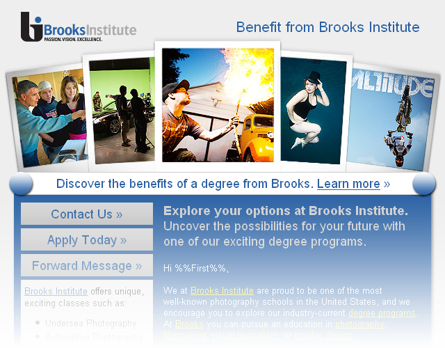 Template for Brooks Institute's monthly newsletter.