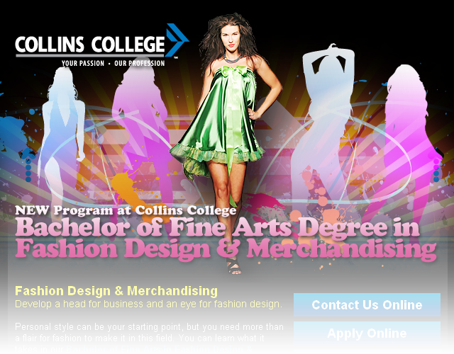 Template promoting Collins College's fashion design & merchandising degree program.Sanford-Brown College