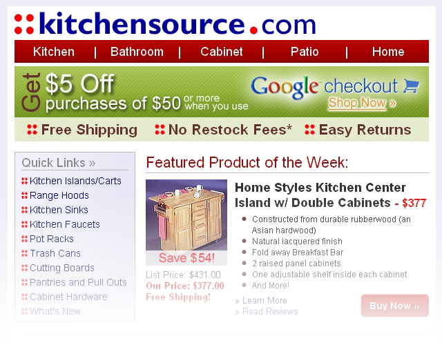 Template for eCommerce client, KitchenSource.com.Cleveland Clinic